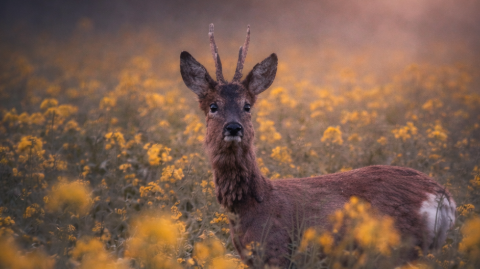 Abendliches Schweigen — Rehbock im Raps Das Feld atmete goldene Stille. Keine dramatische Bewegung, kein prahlerisches Licht — nur die ruhige, fast sorgfältige Vergeudung von Farbe, die der Abend mit sich bringt. Die Rapsblüten wirkten